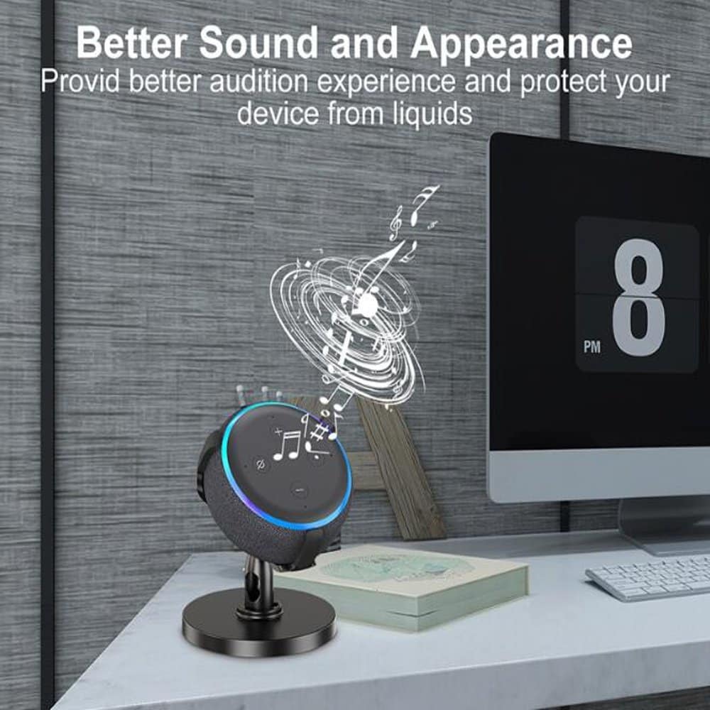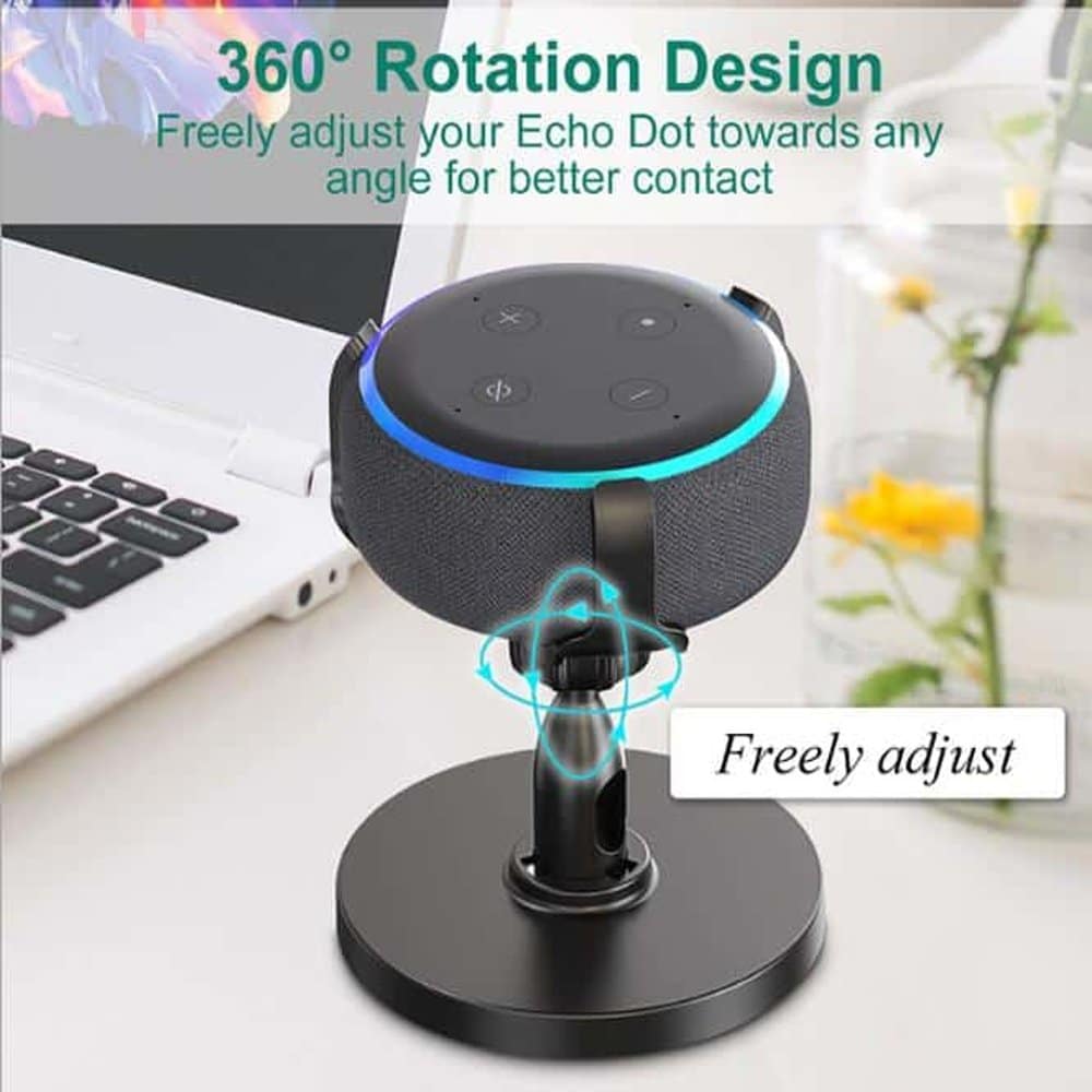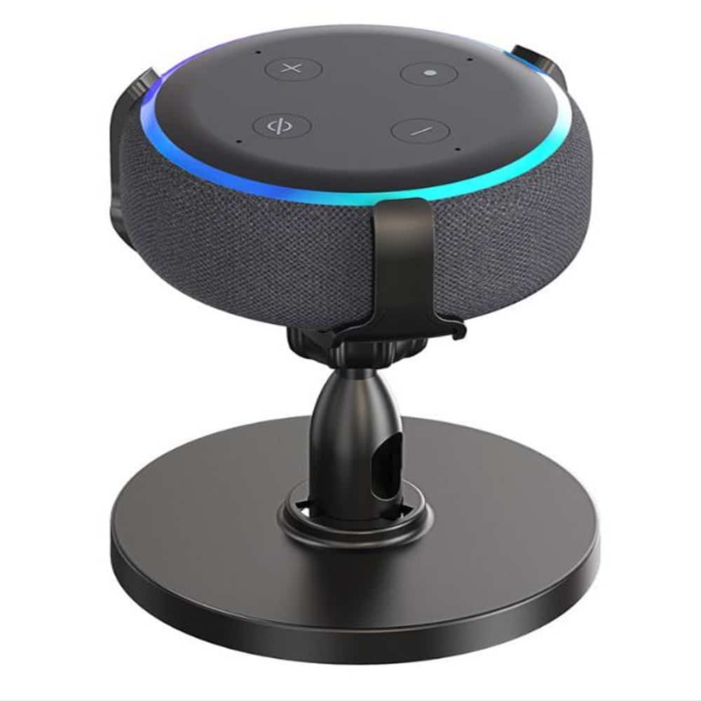 Sound, Space & Safety UpgradeNeed somewhere safe for your Echo Dot 3?The perfect mount for your device!Effortlessly raise your Echo Dot to the ideal height- to keep it safe from surface spills and potential damage.Seamlessly compatible to retain full sound quality and functionality. With a built-in cable management system to keep everything neat and tidy.Fully adjustable with 360 degree movement for customizable viewing angles. Also has anti-scratch / anti-slip silicone cushion for firm placement.Get yours today!. Secure and stable mounting- prevents accidental falls or slips. Customizable viewing angles- full 360 rotation, tilt & swivel. Space saving design- sleek and compact to maximize space efficiency. Integrated cable management system keeps cords neat and tidy. Easy installation- seamlessly compatible to retain full functionalityInstallation Instructions:1. Connect the stand piece with the base2. Rotate it clockwise to lock it3. Attach the speaker holder with the stand piece and base, rotate it counter-clockwise until it’s fixed4. Pull the Echo Dot cord through the holes at the stand pillar and base5. Put your Echo Dot onto the holder and insert the power cord6. Press the cord into the groove slot so it doesn’t move around. Colour: Black. Material: PC + ABS. Size: 10.5 x 10.5 x 13 cm. Compatibility: Echo Dot 3rd Generation . Important: This is not an original product and does not include an Echo Dot device.What do you get?1x Echo Dot 3rd Generation Holder Stand killer-deals-adjustable-speaker-mount-stand-for-echo-dot-3rd-generation
