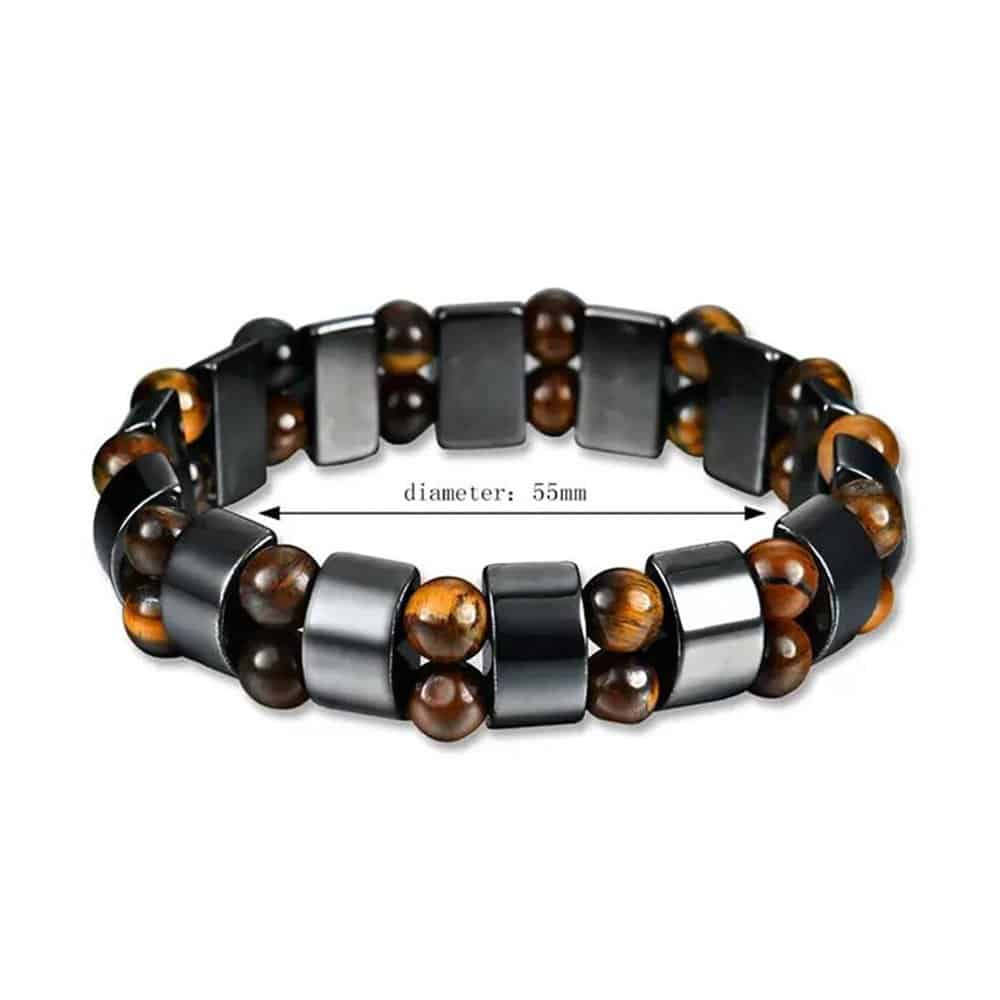 Tiger’s Eye BraceletA captivating fusion of style and positive energy!This bracelet makes a fierce fashion statement. Crafted with genuine hematite stones and mesmerizing tiger’s eye beads, it exudes confidence and strength.Hematite, known for its grounding properties, harmonizes your mind, body, and spirit. While the tiger’s eye brings clarity and courage, amplifying your inner warrior.With an adjustable design suitable to fit most wrist sizes. This is the perfect modern-day accessory!· Experience the authentic energy and beauty of natural hematite stones and tiger’s eye beads· Grounding and protective energies to help balance emotions, improve strength, and promote confidence and stability· Versatile design- a fashionable accessory that goes with anything· Adjustable fit- comfortable for a wide range of wrist sizes· Perfect gift for a loved one· Colour: Black· Material: Tiger Eye Beads & Hematite Stones· Size: 165mm-180mmWhat do you get?1 x Magnetic Therapy Bracelet